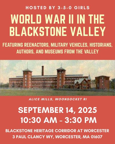 The Blackstone River Valley, spanning 25 towns across Rhode Island and Massachusetts, played a crucial role in America’s wartime efforts during World War II. While other parts of the country took time to shift into wartime production, the industries of the Blackstone Valley quickly adapted—producing essential materials such as wire for jeeps and communication equipment, wool and cotton for uniforms and blankets, rubber for gas masks, and much more.